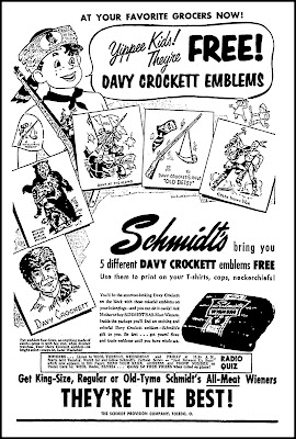 The famous frontiersman had been featured in a series of episodes on Walt Disney's Disneyland TV show beginning back in early December 1954. Soon, the legendary coonskin-capped character who died at the Alamo became the idol of millions of boys. Eventually in 1955, you could buy just about anything with a Davy Crockett theme, from toys to clothes to peanut butter.